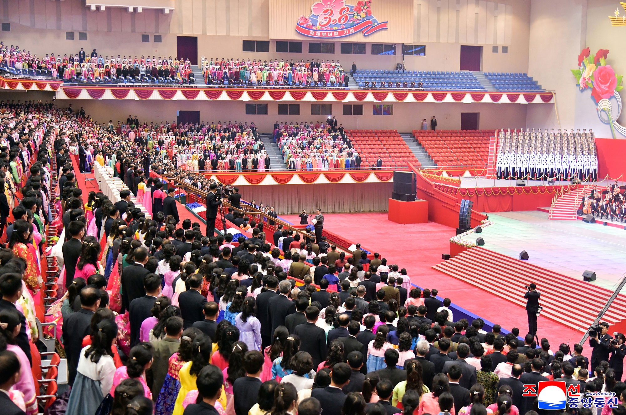 Now that the whole country is brimming with love, respect and warm congratulations to the women who are building the bright future, ensuring the continuity of the bloodline of patriotism generation after generation, a grand performance was given at the Pyongyang Indoor Stadium on March 8, International Women’s Day.