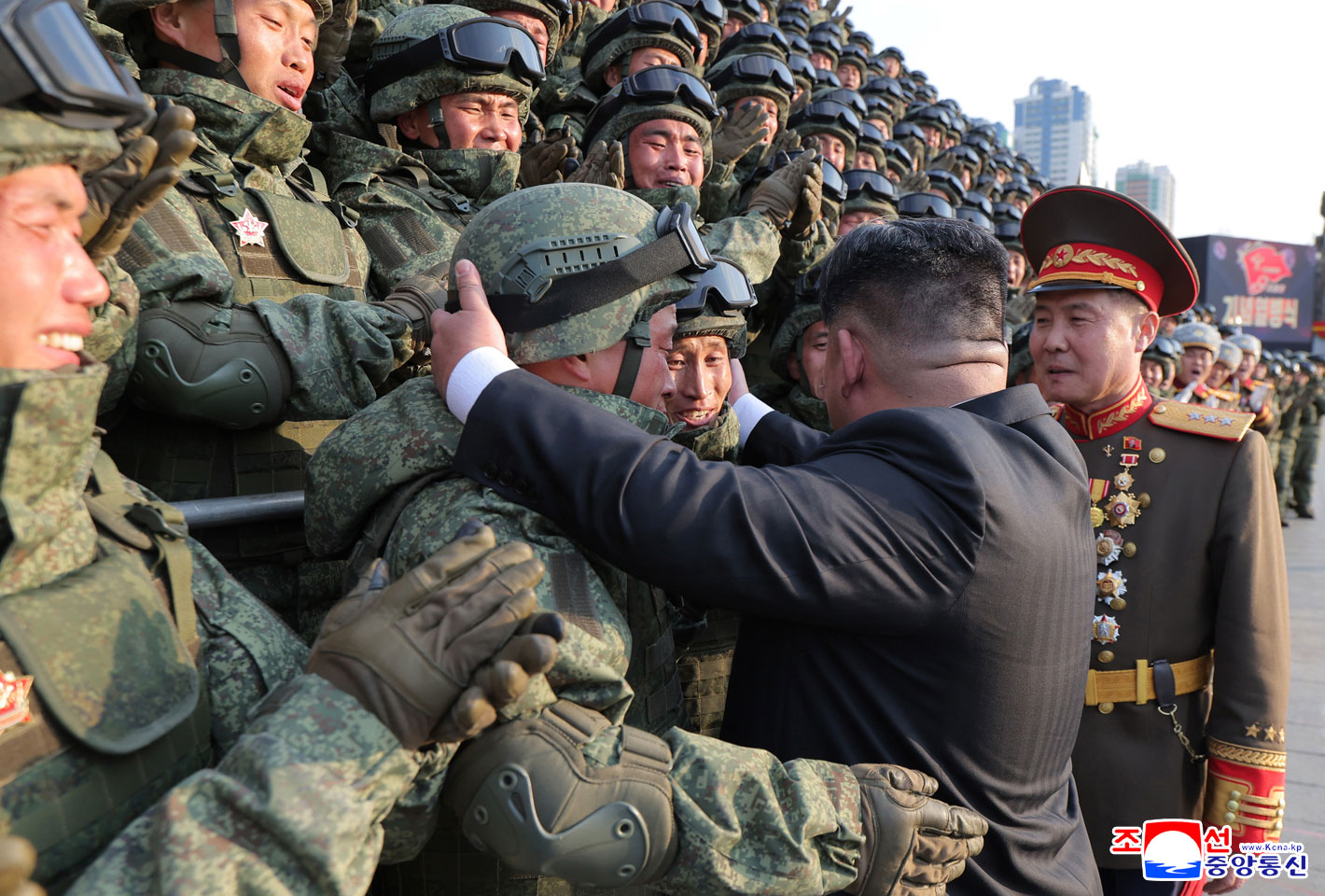 Warmly acknowledging the enthusiastic cheers, Kim Jong Un gave a salute to the officers and soldiers of the parade units who demonstrated their absolute loyalty to the orders and instructions of the Party and the heroic fighting spirit as the honorable representative and symbol of the KPA and further convinced everyone of the victory in our cause that will be accelerated by the vanguard and core role of the revolutionary armed forces.