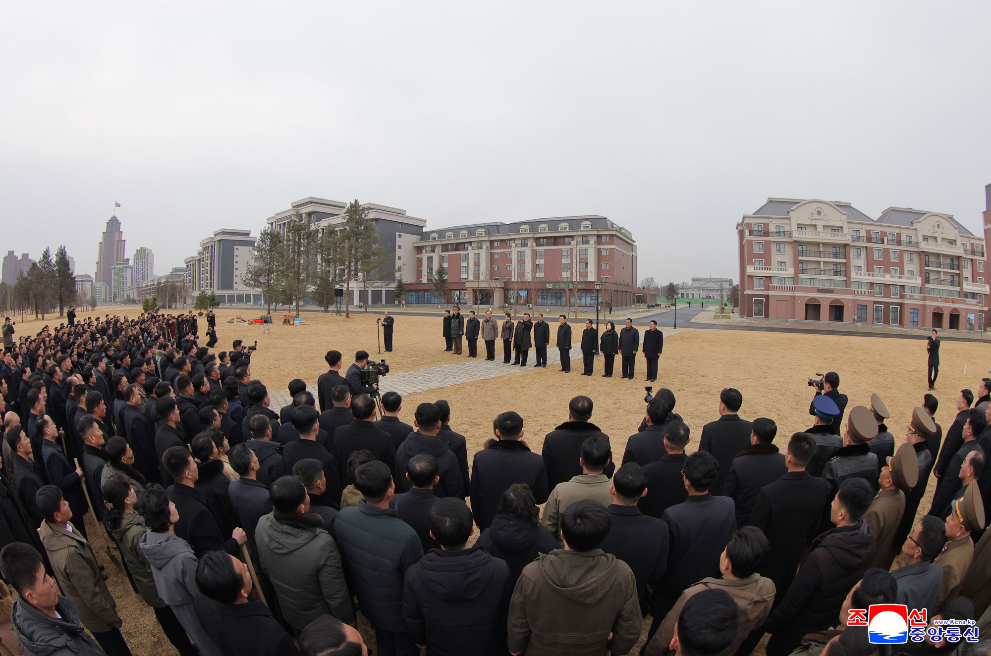 The respected Comrade Kim Jong Un, together with other participants, planted for a long time the trees which will become new witnesses to the prospering capital city, saying that the true image of our generation following the noble spirit of heroic soldiers and reliably carrying forward the tradition of invincibility should be reflected, along with the history of the country growing stronger, in every tree that will grow with the souls of the martyrs of the overseas military operations, adding beauty to the landscape of Saeppyol Street full of joy of moving into new houses.